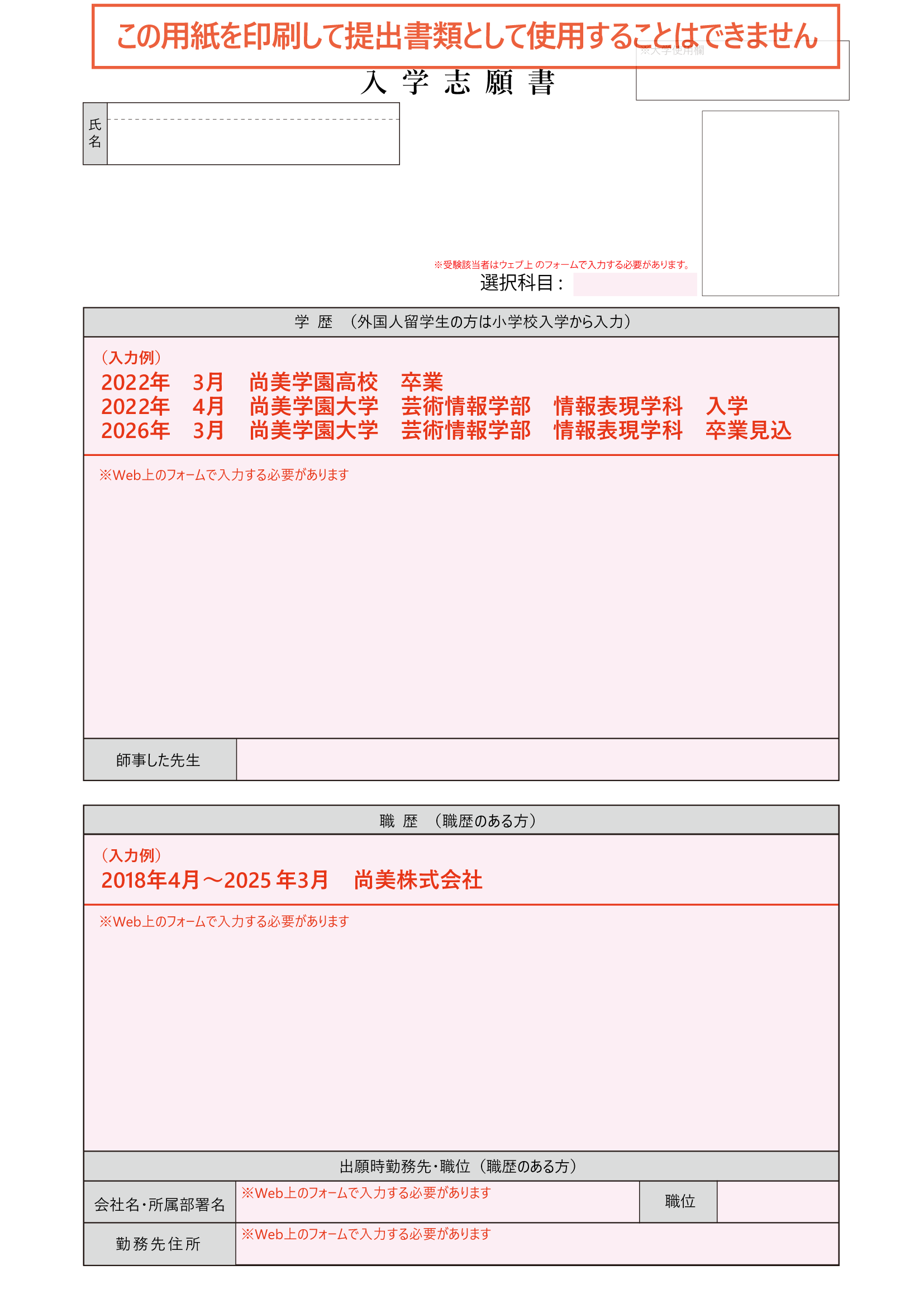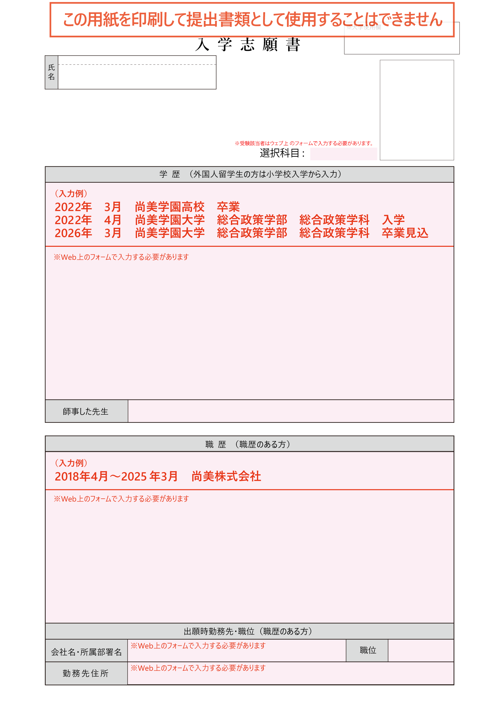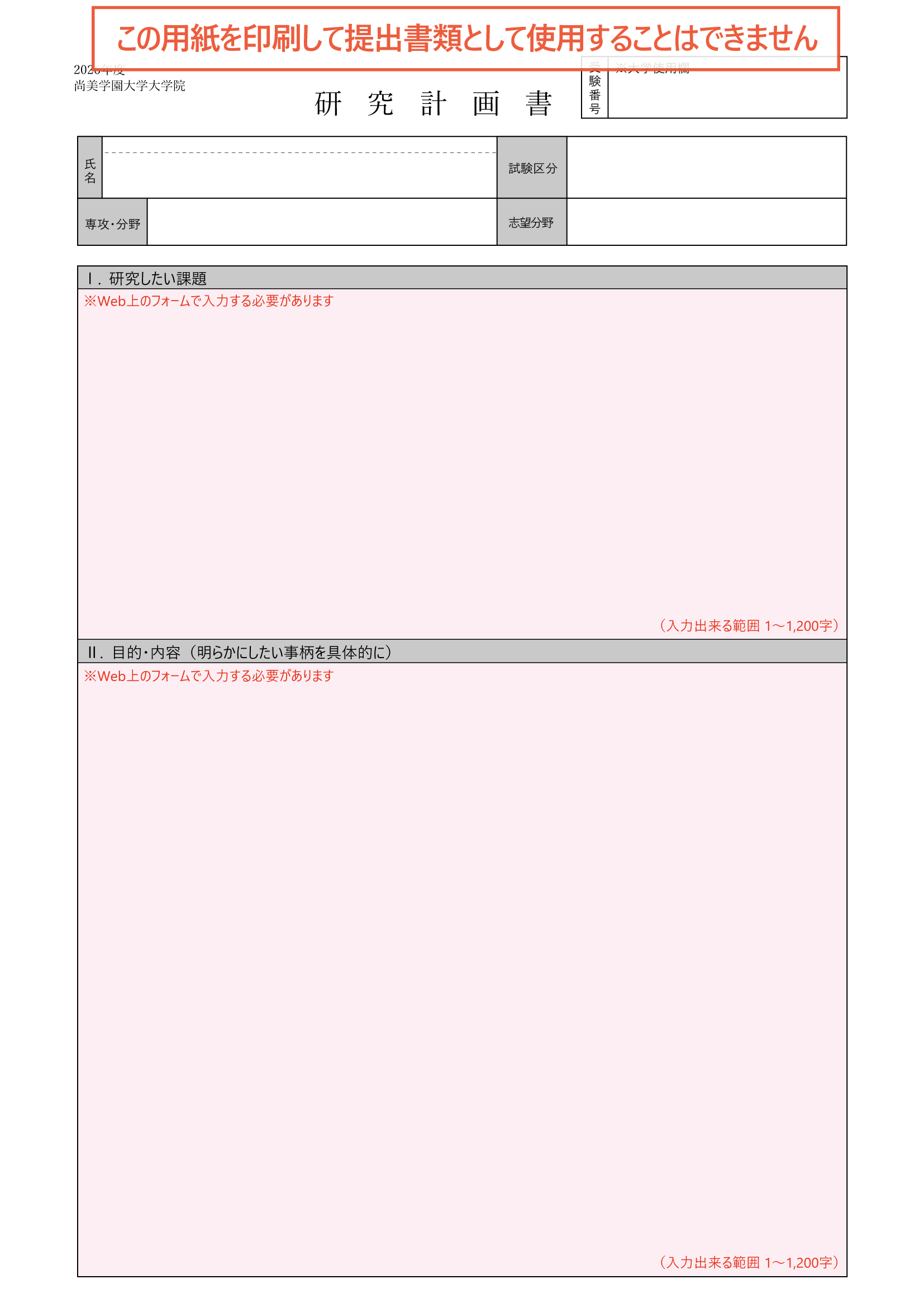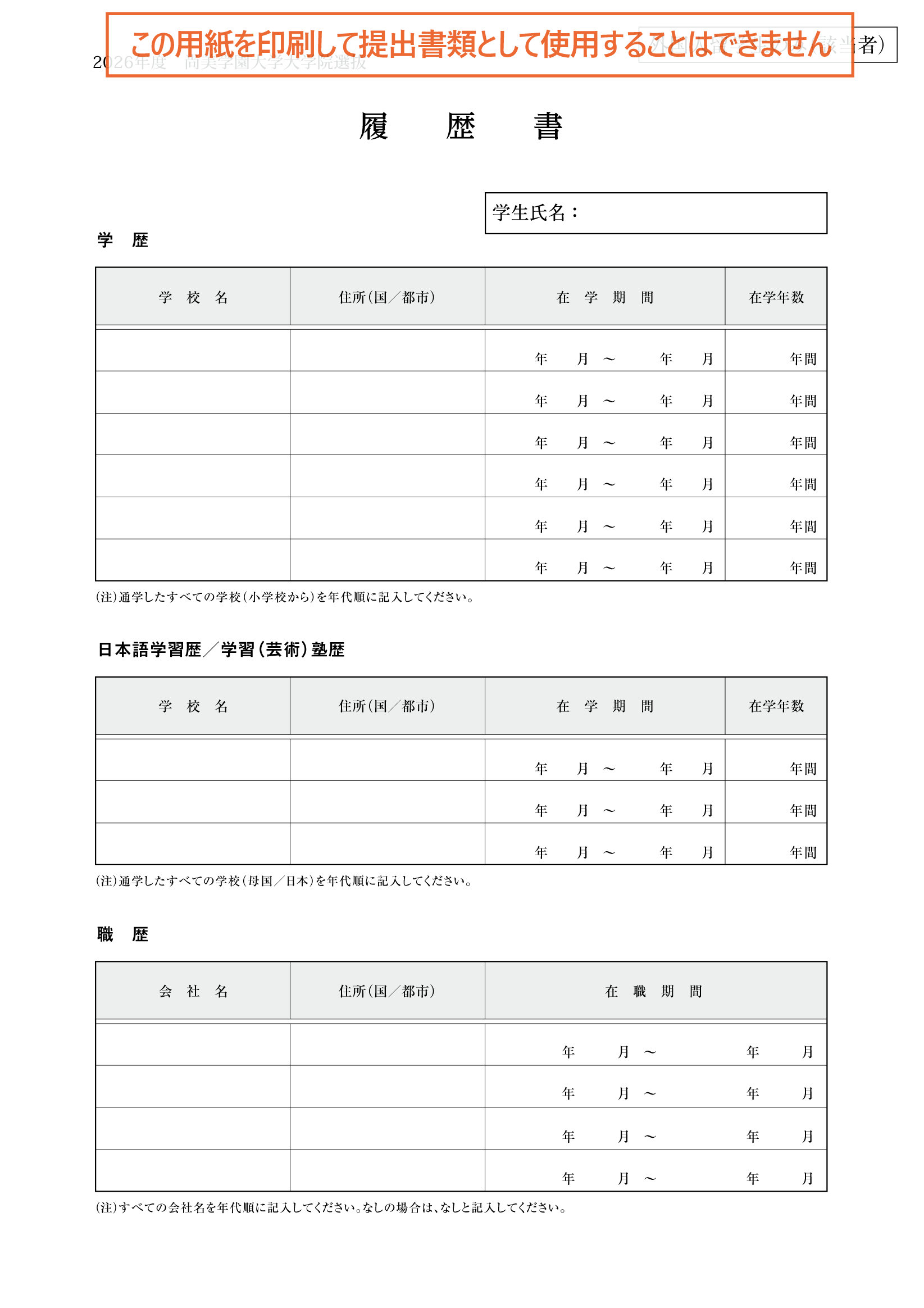 大学院 入学志願書