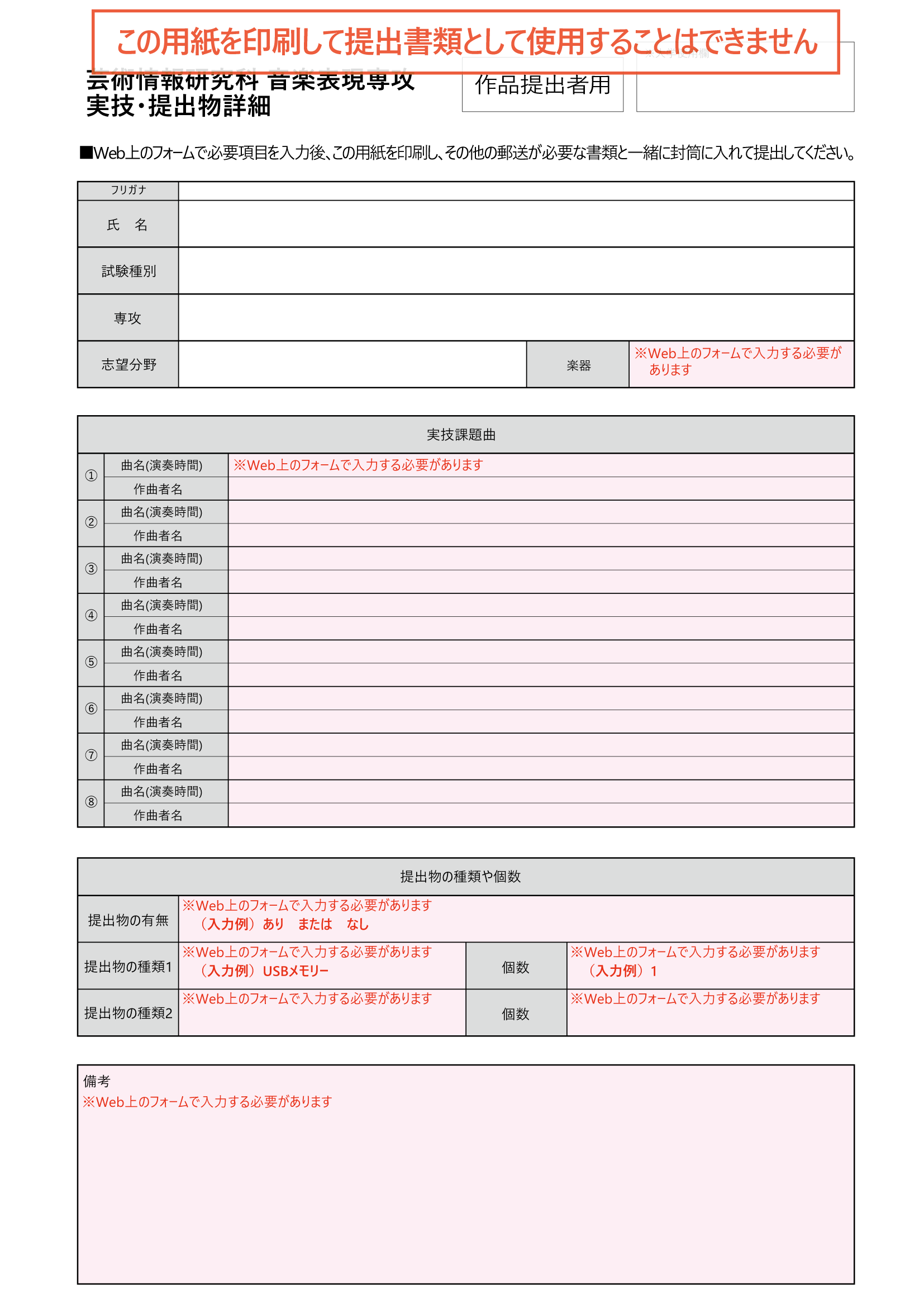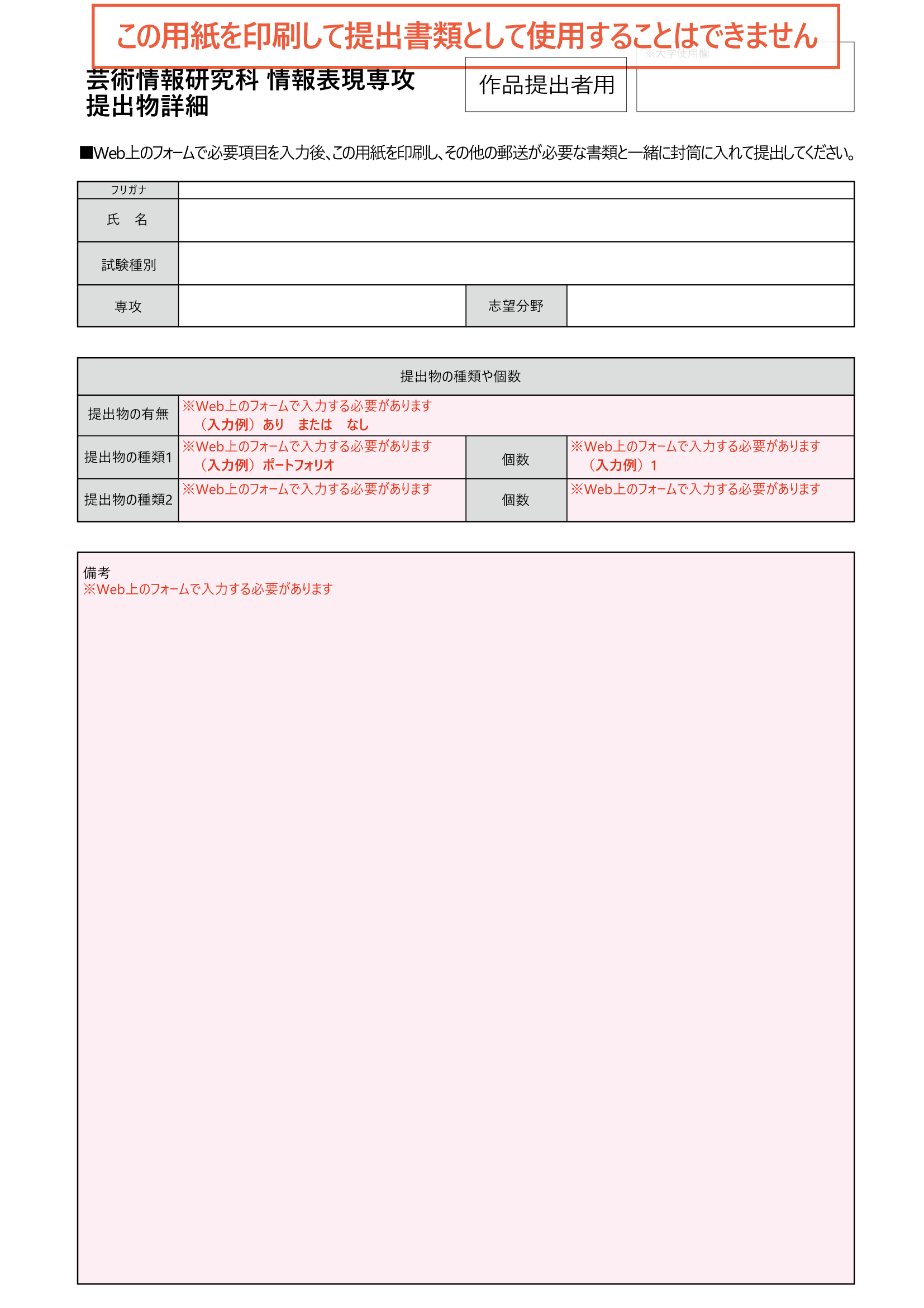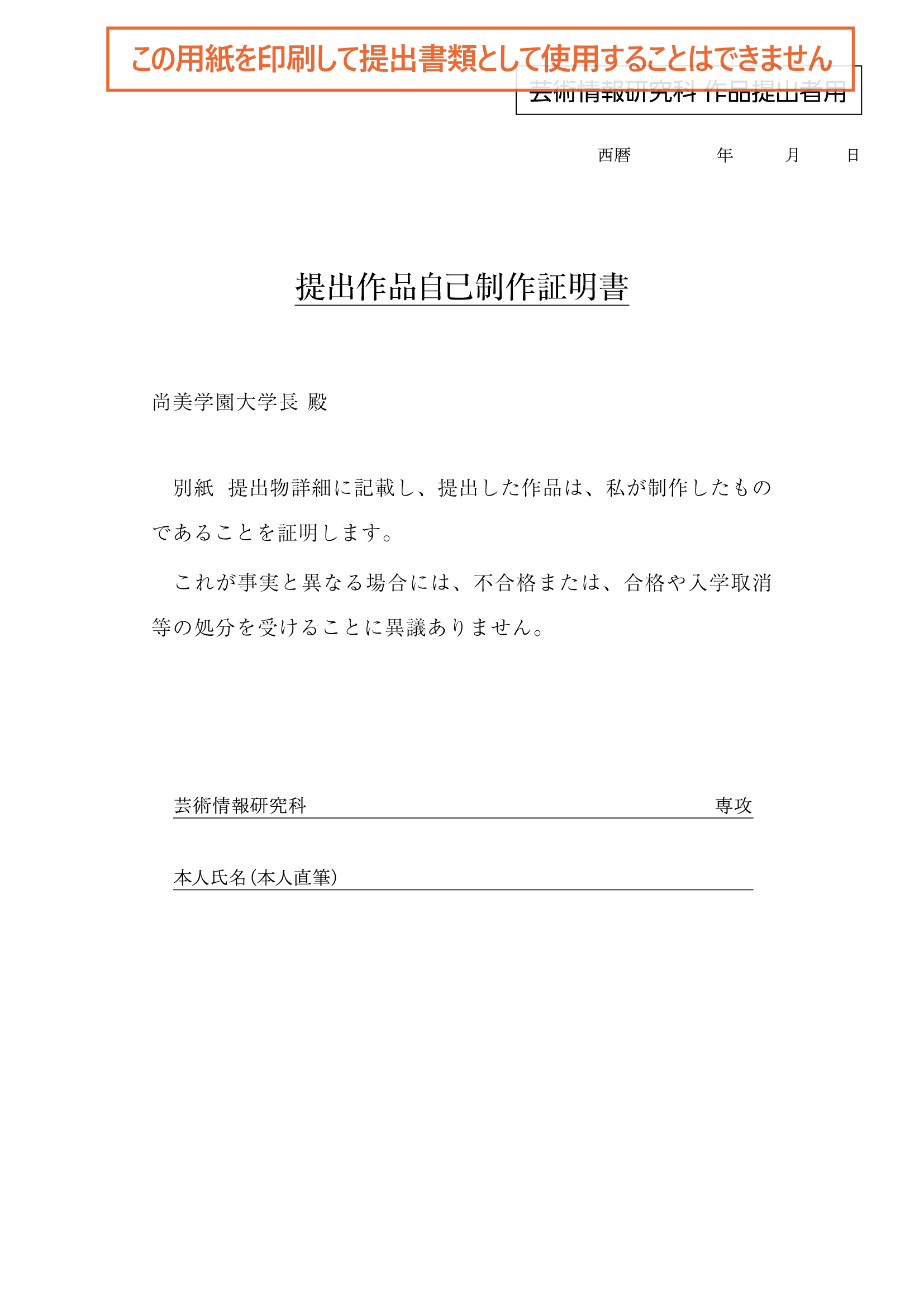 提出作品自己制作証明書(該当者のみ)