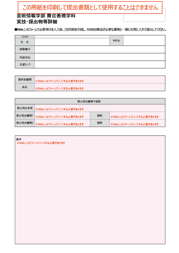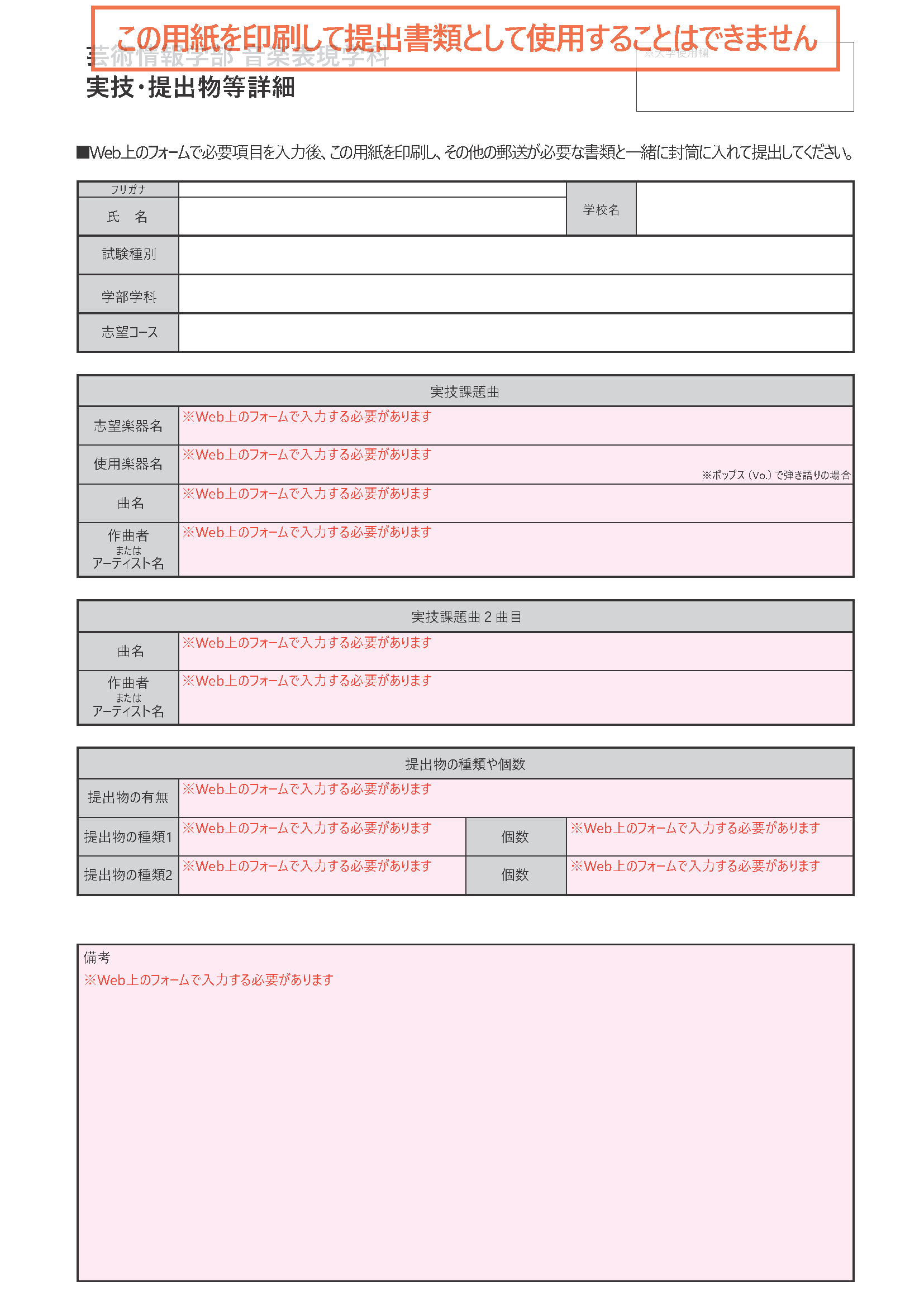 舞台表現学科 実技・提出物等詳細(実技課題「B・歌唱」)