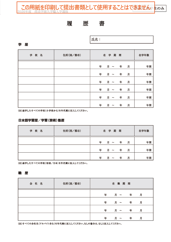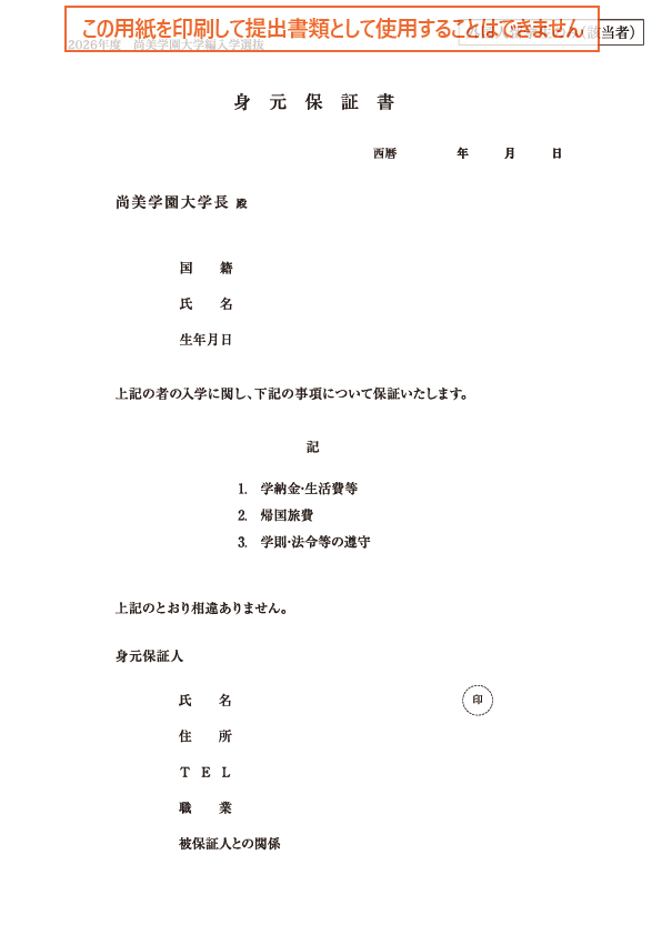 ※外国人留学生のみ追加で必要な出願書類です(保証人が作成)