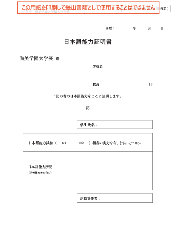 日本語学校に在籍している学生がスコア票を提出できない場合は、外国人留学生出願要件(2)(編入学選抜 学生募集要項P.4参照)に基づく証明書を提出してください。