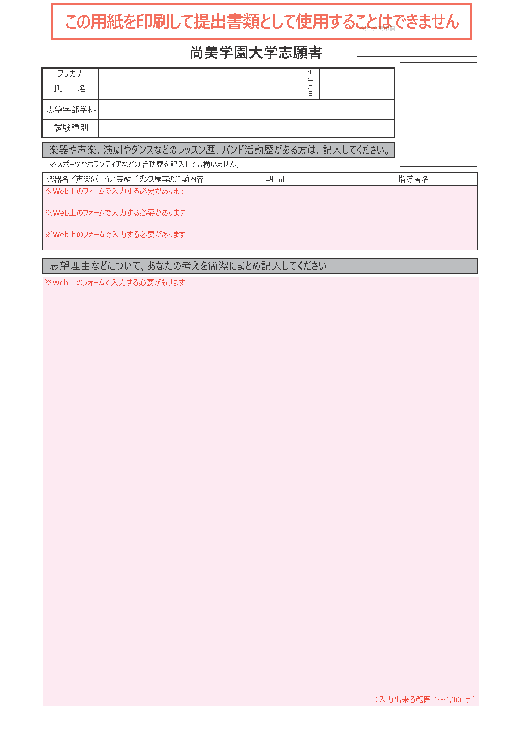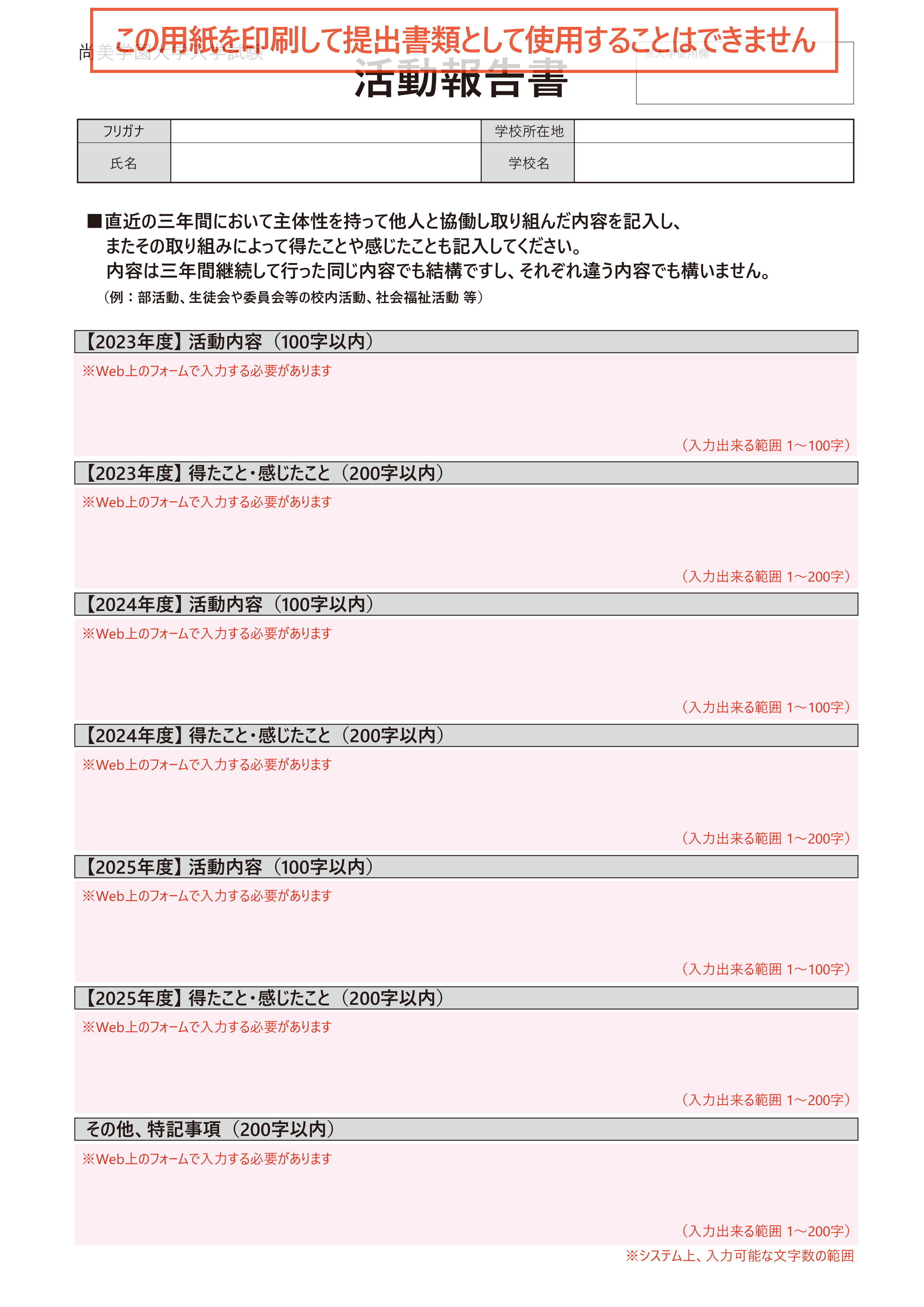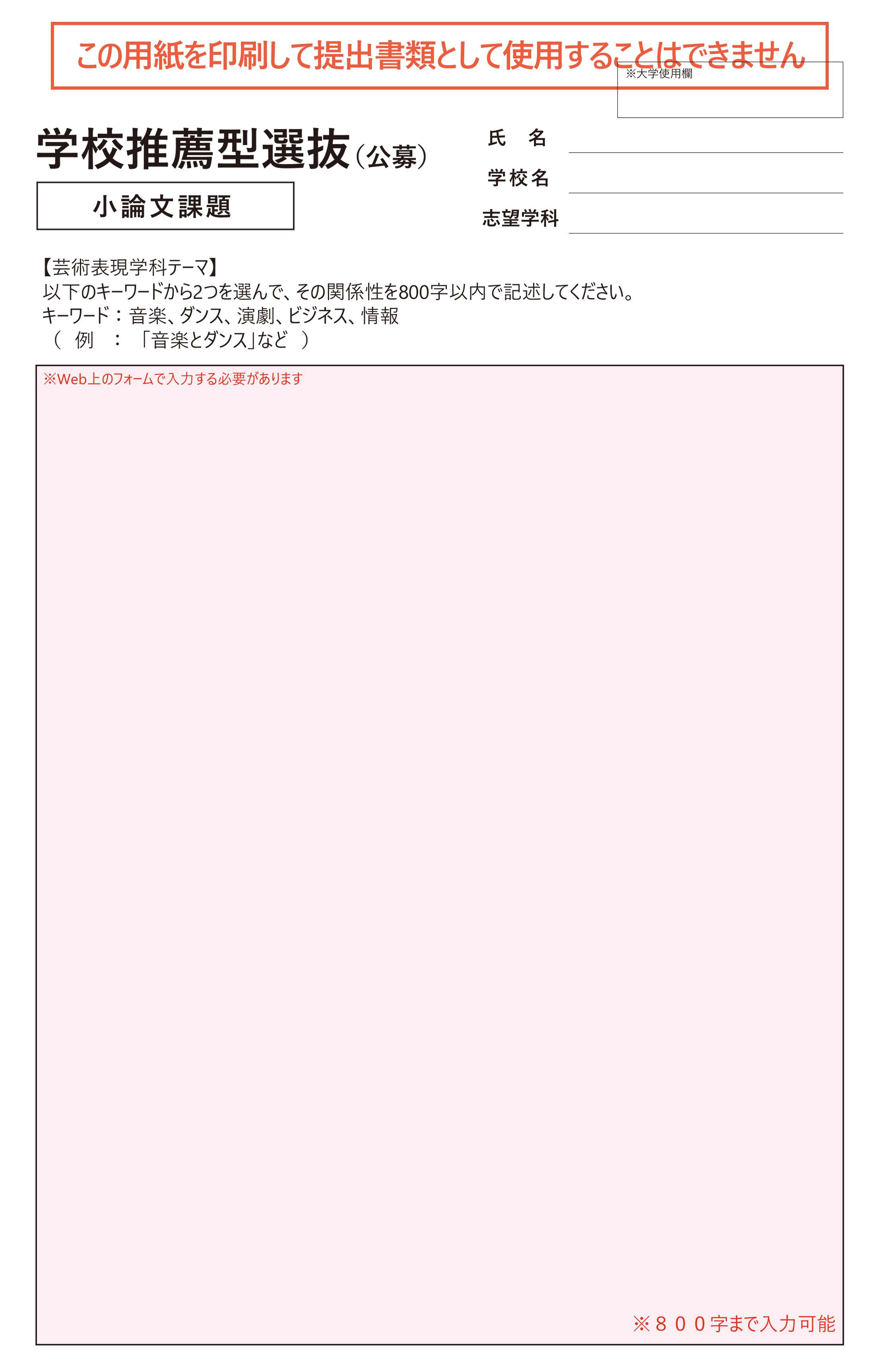 (例:「音楽とダンス」など)※書類のピンク色の部分が入力項目です