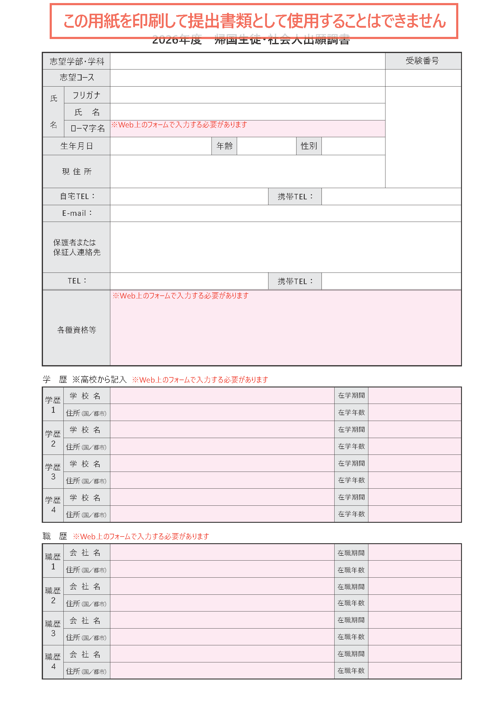 帰国生徒・社会人出願調書