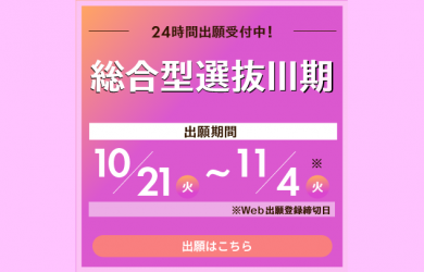 【入試情報】「総合型選抜Ⅲ期」 11/4(火)まで出願受付中