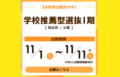 【入試情報】「学校推薦型選抜I期(指定校/公募)」 11/11(火)まで出願受付中