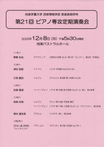 12/8(月)「第21回 ピアノ専攻定期演奏会」開催のご案内