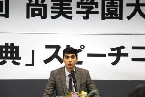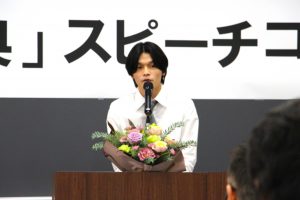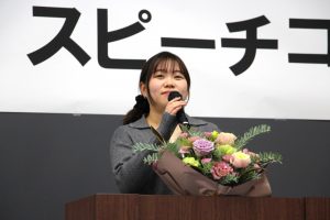 予選を通過した英語部門5名(当日登壇3名)、日本語部門4名、計7名の出場学生は、自身が選択したテーマに沿って5分間の堂々としたスピーチを行いました。