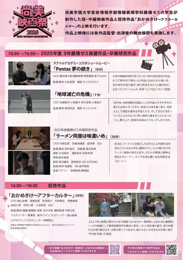 2/11(水/祝)情報表現学科卒業イベント「尚美映画祭2026」開催のご案内
