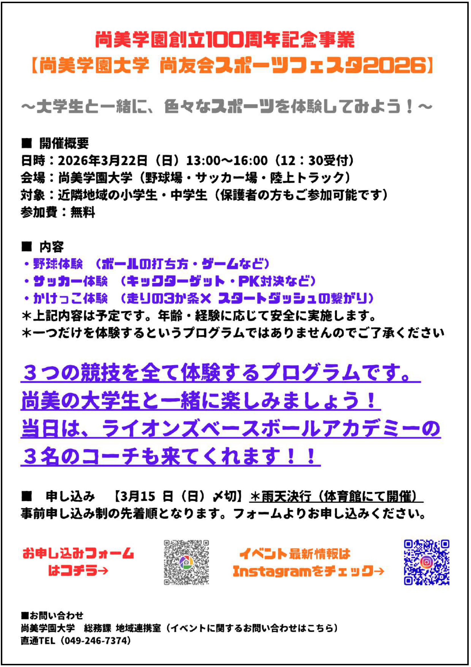3/22(日)「尚美学園大学 尚友会 スポーツフェスタ2026」を実施いたします