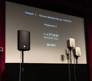 入選作品は3月3日アンスティチュ・フランセ東京 エスパス・イマージュにて開かれた公募入選作品コンサートにおいて、28個のスピーカーによる立体音響の環境で作曲者自身によって上演されました。