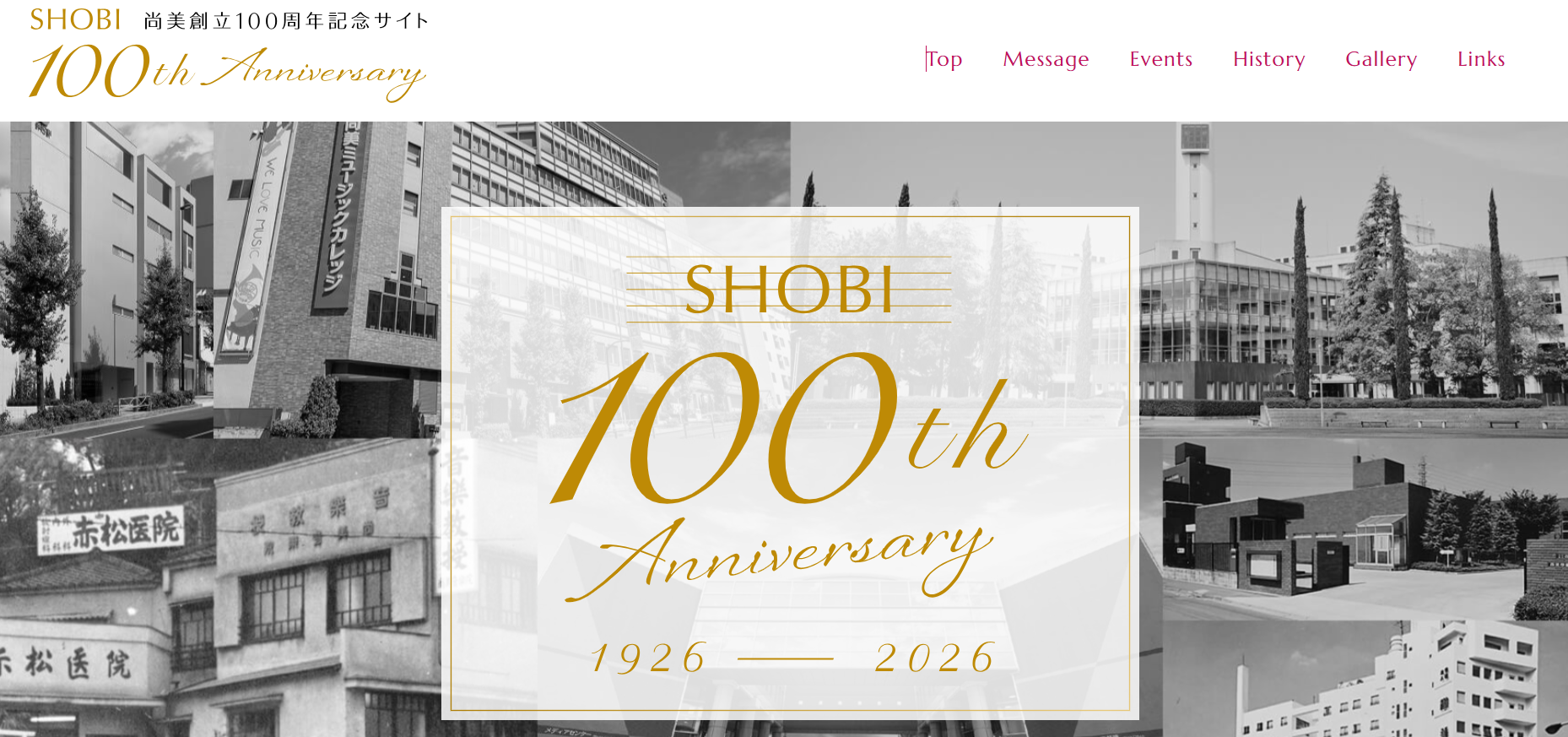 尚美学園は、1926年(大正15年)に音楽家 赤松直により私塾「尚美音楽院」として創設され、2026年に創立100周年を迎えます。この創立100 周年の記念事業の一環として、本学園の歴史や実績を明らかにし、未来に伝承していくため「尚美創立 100周年記念サイト」を公開しました。