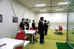 締結式後には、今後の連携事業に役立てるため、キャンパス施設案内を行い、映像スタジオやデータ解析室、サッカー・野球グラウンドなど、本学特有の施設設備を見学していただきました。