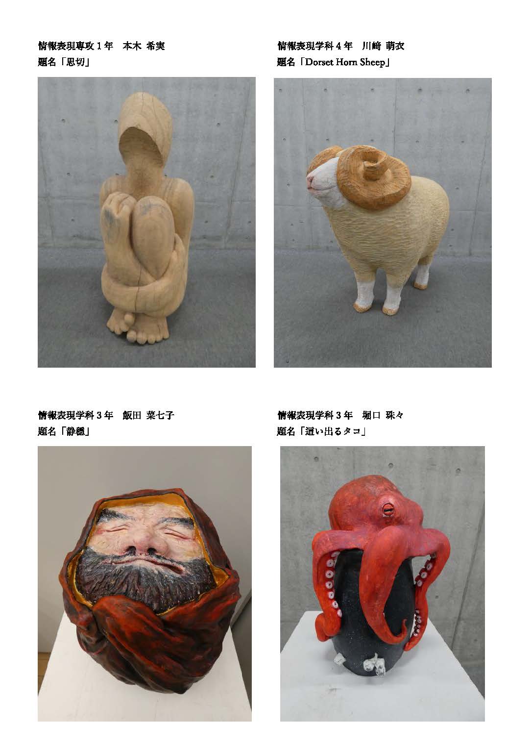 続いて、宮澤教授より、「彫刻審査では3分の2以上の票で入選が決定するが、今回の作品は全員一致で入選が決定した。大学のバックアップ等のおかげであり感謝申し上げます。学生については、今回の入選は経験の一つであり、今後社会人となる上での糧にしてほしい。」との言葉がありました。