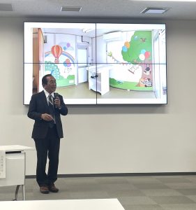 12月24日(水)北本市役所にて行われた「公園授乳室のリニューアルお披露目会」では、北本市長の三宮幸雄様や協賛企業の皆さまがご列席され、デザインの公開と永野さんへ記念品の贈呈などが行われました。