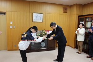 永山 賀久学長より、「様々な大会で実績を出すことは大変なことだが、それを続けるということはさらに大変なことだと思う。皆さんの努力と指導者の方、顧問の先生、いろんな方に支えられての成績だと思う。2月の全米大会に向けてそこでの活躍を改めて期待している。」とのお祝いと激励の言葉がありました。