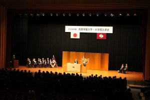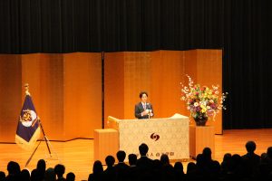 式典では、永山学長より式辞として新入生への祝福と歓迎のメッセージが贈られ、続いて後援会会長、尚友会長よりご祝辞を賜りました。