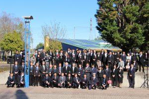 当日は午前中まで雨模様でしたが、午後には天候も回復し、青空の広がる中で式典を執り行うことができました。学生・教職員・保護者あわせて約120名が参列し、創立100周年の記念すべき節目にふさわしい、盛大な植樹式となりました。