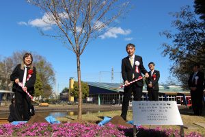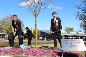 その後、来賓及び本学出席者により、桜(神代曙)の植樹を行いました。