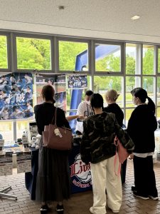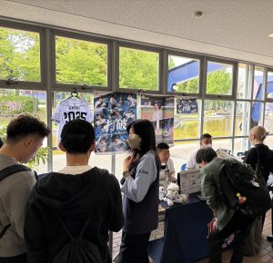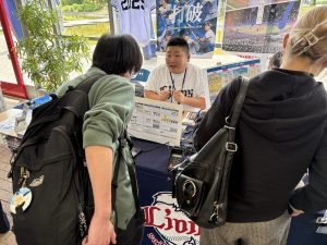本取り組みは本学が初めてとなり、 当日は、(株)西武ライオンズのスタッフと学生が協力してブースを設営しました。お昼休憩時には多くの学生が訪れ、ブースは大盛況の様子でした。